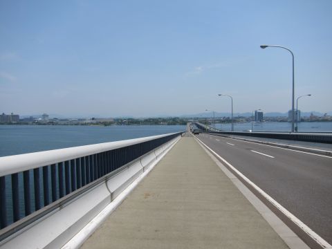 いよいよ琵琶湖大橋を渡ります。すごい興奮しました!