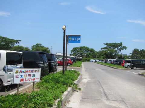 橋を渡ってすぐ、ピエリ守山の駐車場がありました。