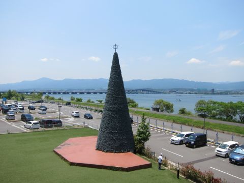 クリスマスツリー?の後ろに琵琶湖大橋が見えました。