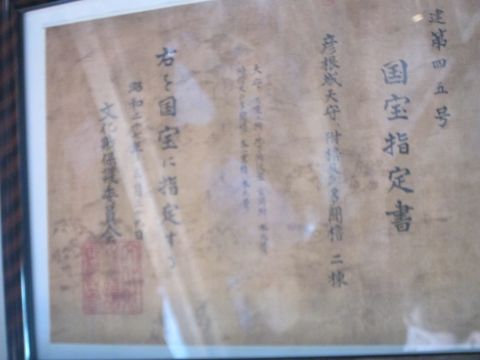 国宝指定書